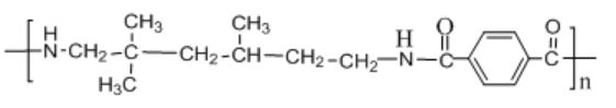 英文名:Semi-aromatic nylon,又稱無定形聚酰胺,化學名稱爲:聚對苯二甲酰三甲基己(ji)二(er)胺。其分子(zi)結構式爲: