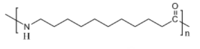 英文名:Polyamide12 or Nylon12,簡稱PA12,又稱聚酰胺12,即聚十二酰胺。分子結構式爲: