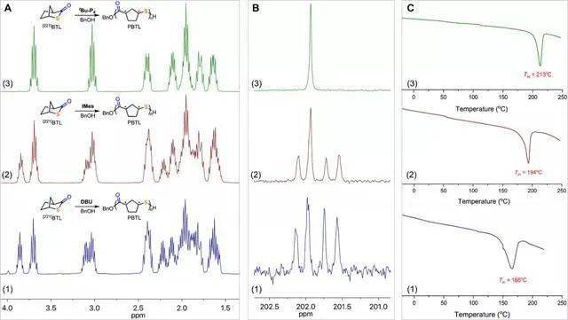 (A) 1H NMR(25°C,CDCl3)光譜(pu)。百(bai)萬分之(zhi)幾。(B) C═O區的13C NMR(25°C,CDCl3)光譜。(C) PBTL樣品(pin)在(zai)10°C/min下的二次加熱掃描DSC麯(qu)線如下: